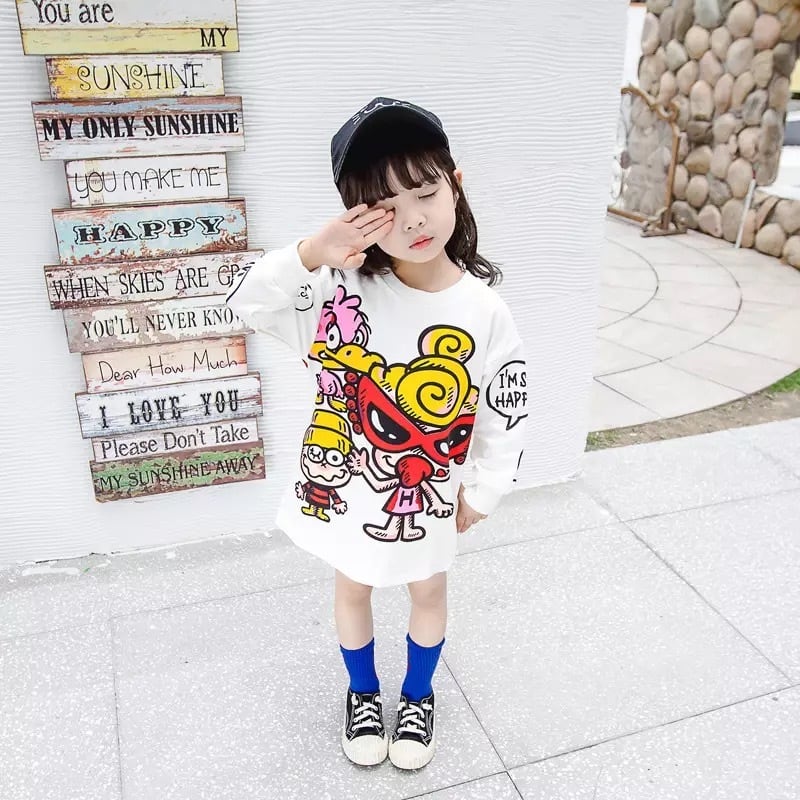 ちなみにうちの娘が普段90or100cm着用なのですが、110cm購入したところ膝が少し出るかな?くらいのトレーナーワンピースとして着れそうでした!